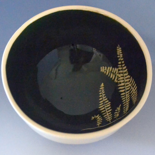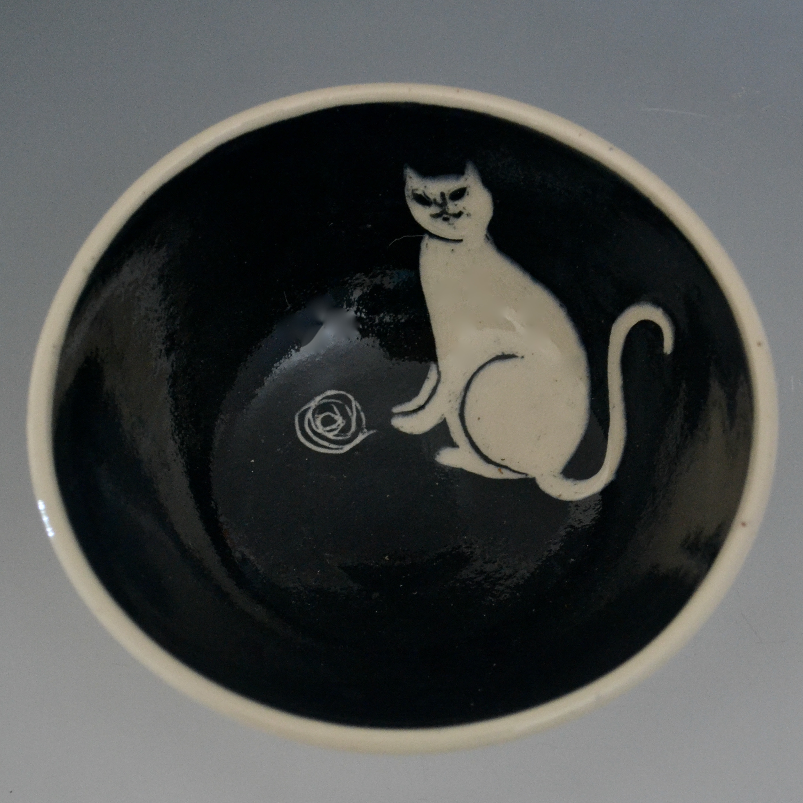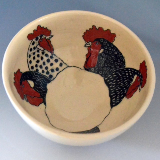 Approximately 6″ across and 3″ high, just right for cereal, soup, or a small salad. They have designs on the inside and bottom. Designs will vary a little since each is hand drawn. Microwave and dishwasher safe.