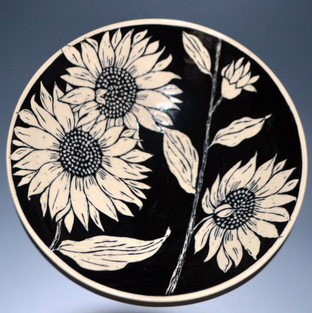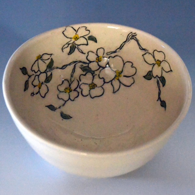 Big enough to serve salad or a side dish to guests or a really big cereal bowl! Serving bowls range from 8-10″ wide and are 4-6″ high. They have designs on the insides and bottom. Designs will vary a little since each is hand drawn. Microwave and dishwasher safe.